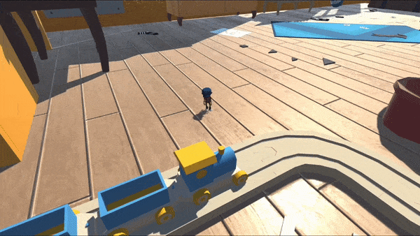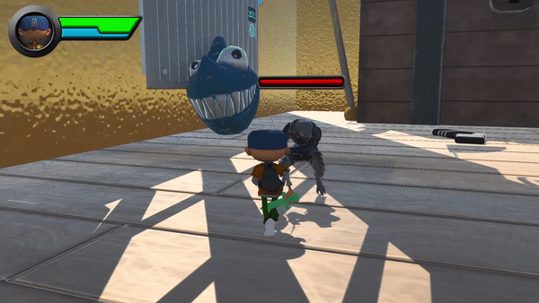 The toy sword unlocks the combat mechanics of the game. The player has to collect the sword to be able to fight the lizard knight and win the game. His health bar is displayed on the top left side of the screen, and to regain his health, the player would have to collect medicine placed around the environment. The sword animations have a three-hit combo mode.